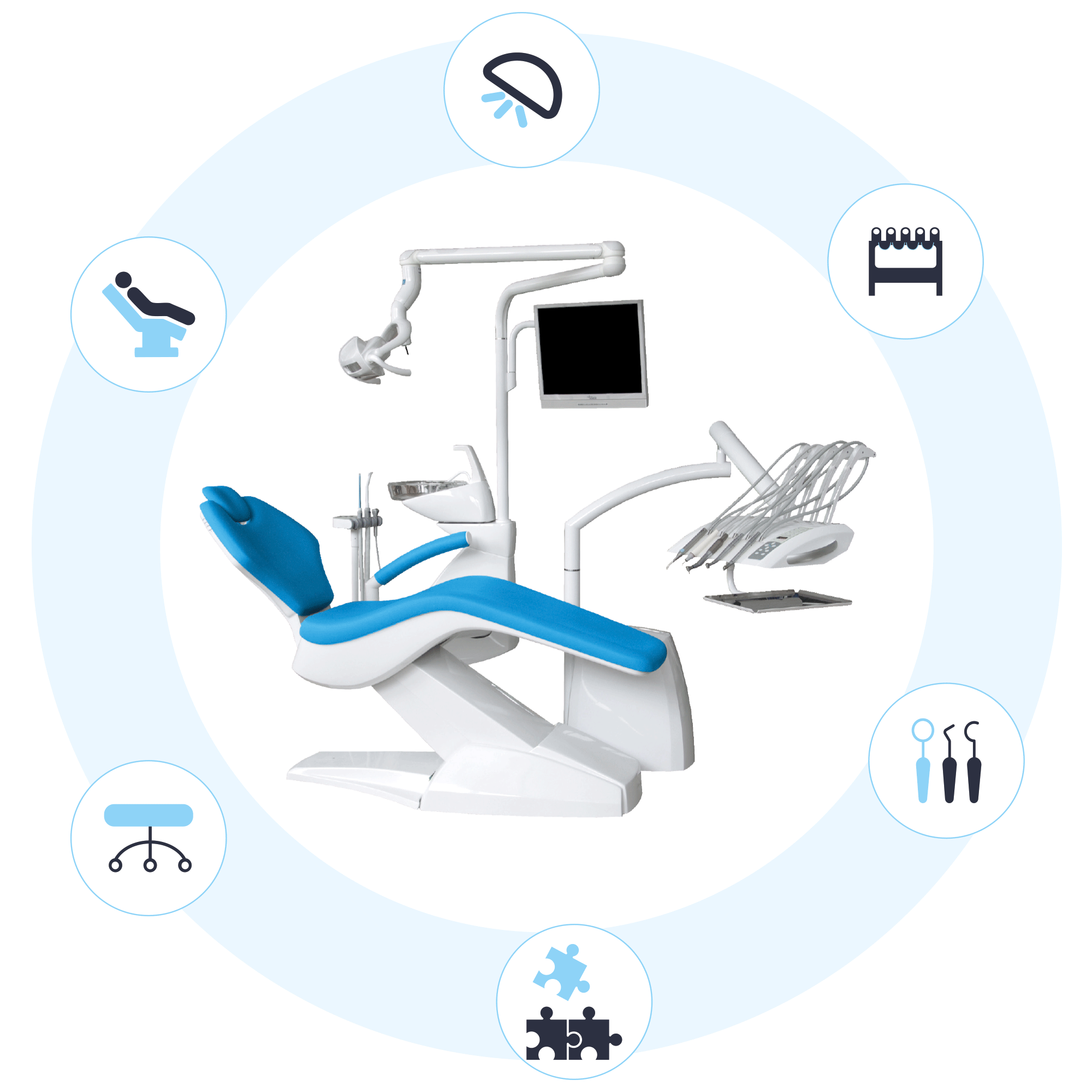 Grâce à des partenaires fabricants de confiance et reconnus pour la qualité de leurs produits, nous proposons une large gamme de matériel dentaire. Pour l’aménagement de cabinets, du fauteuil seul au fauteuil dentaire tout équipé en passant par la pièce de rechange.